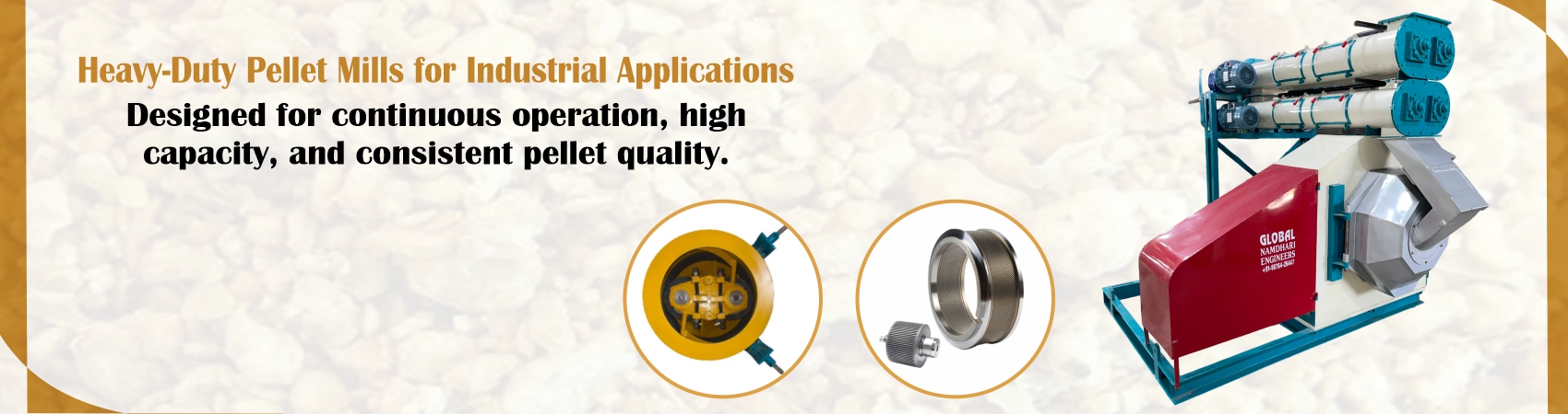 Horizontal Ring Die Pellet Mill is a machine used to convert low density material to high density Pellets. It Convert Power material to granular form. This is also called granulator. This is mainly used for making cattle feed pellets, Poultry Feed Pellets. “GNE Feed Plants” Manufacture World-class Pellet mills suitable for all weather and geographical conditions.